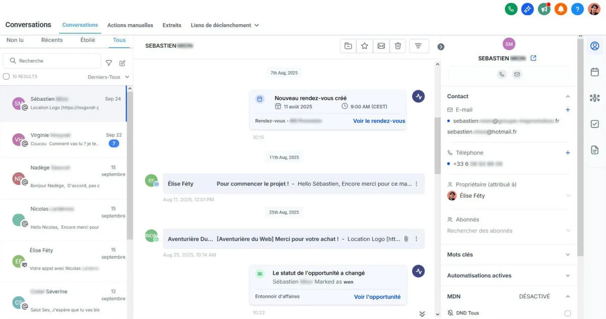 Imaginez tout ça dans une seule interface. Vous voyez d'un coup d'œil qui vous a contacté, par quel moyen, vous répondez directement, et vous gardez un historique complet de chaque client. Plus de message perdu, plus de numéro griffonné sur un papier qui traîne dans la camionnette.
